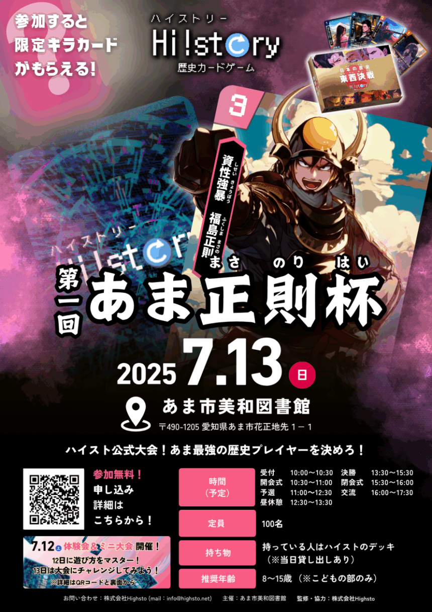 その他詳細はチラシ、またはHi!stoory歴史カードゲーム公式サイトをご確認ください。