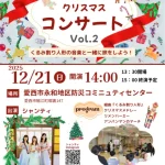 あま市美和文化会館で開催される『Christmas ロビーコンサート』、愛西市の永和地区防災コミニュティセンターで開催される『冬のワクワククリスマスコンサートvol.2』、愛西市の佐織総合福祉センターで開催される『明治安田生命 ~笑顔を運ぶ「遺言」のお話~』の3件を新たにイベントに追加いたしました。