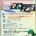 液晶タブレットを使って、デジタルイラストを体験してみませんか? 初心者の方、お子さま、年配の方まで大歓迎。「デジタルで絵を描くのは初めて」という方でも、操作方法から丁寧に説明します。 今回はデジタルイラスト体験に加えて、オリジナルグッズ作成を...